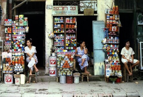 Những người bán hàng trước cửa nhà trên khu phố cổ Hà Nội - Reuters