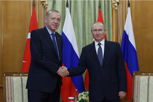 Tổng thống Nga Vladimir Putin gặp Tổng thống Thổ Nhĩ Kỳ Recep Tayyip Erdogan tại Sochi, Nga, tháng 8/2022 - Handout / Reuters
