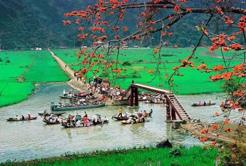 Vua Trần thường tự chèo chiếc thuyền nhỏ ra chùa Khán Xuân cùng người dân thắp nhang lễ Phật - Ảnh minh họa Lễ hội chùa Hương