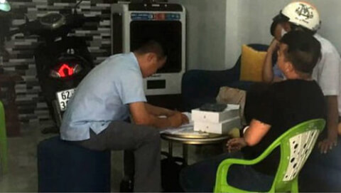 Ông Trương Châu Hữu Danh áo đen đang "làm việc" với công an Cần Thơ