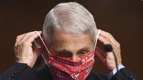 Bác sĩ Fauci đeo khẩu trang trong buổi điều trần trước Thượng Viện Mỹ, Washington D.C., 30 tháng Sáu.