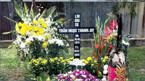Phần mộ của Linh mục Giuse Trần Ngọc Thanh, người bị sát hại bởi một người đàn ông khi đang làm lễ rửa tội cho các giáo dân tại một điểm sinh hoạt tông giáo hôm 29/1 ở Giáo xứ Sa Loong của Kon Tum.