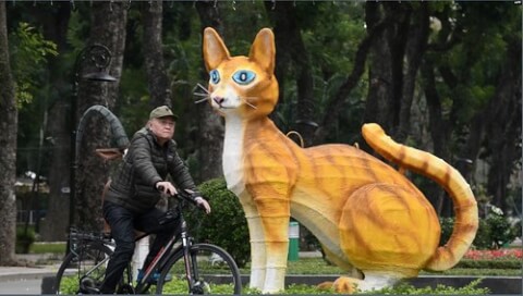 Linh vật Mèo trong dịp Tết Quý Mão ở Công viên Thống nhất, thủ đô Hà Nội