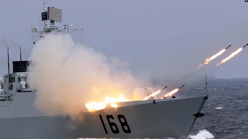 Tàu Trung Quốc phòng tên lửa chống ngầm trong một cuộc tập trận.