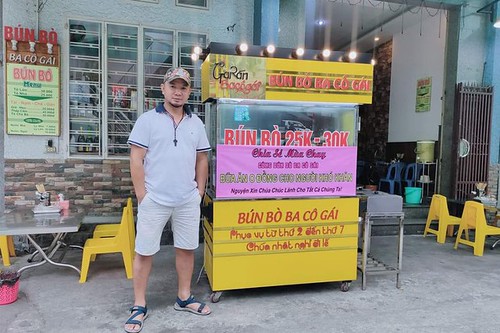 Ông Bùi Tuấn Lâm trước xe bán bún bò của gia đình - FB Lê Thanh Lâm