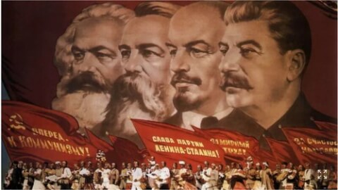 Ảnh minh họa : Áp phích tuyên truyền của Liên Xô (khoảng năm 1960) mô tả (từ trái sang phải): Karl Marx, Friedrich Engels, Vladimir Lenin và Joseph Stalin. Rue des Archives / © Rue des Archives / PVDE
