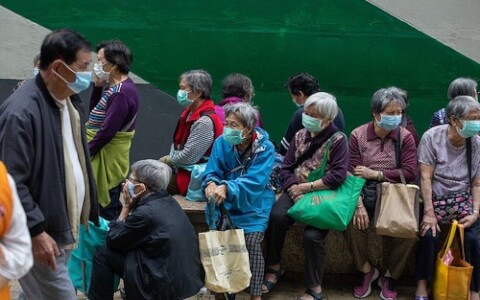 Người dân chờ được phát khẩu trang miễn phí ở quận Sham Shui Po của Hồng Kông vào thứ năm. Ảnh : Jerome Favre / EPA, qua Shutterstock