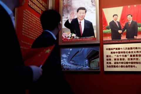 Người dân nhìn ảnh Chủ tịch Trung Quốc Tập Cận Bình trưng bày trên một góc đường tại Bắc Kinh, tháng 11/2021