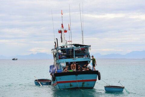 Ngư dân trên tàu cá gần đảo Lý Sơn, Quảng Ngãi hôm 20/8/2022 - AFP