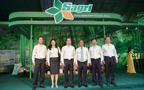 Tổng giám đốc Tổng Công ty Nông Nghiệp Sài Gòn- Sagri, Lê Tấn Hùng (thư ba từ phải sang) tại một cuộc triển lãm của công ty Sagri. Courtesy Sagri