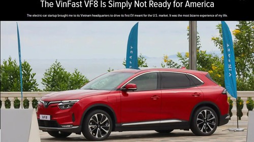 VOA, 18/12/2022"VinFast VF8 đơn giản là chưa sẵn sàng cho [thị trường] Mỹ", đó là hàng tít của một bài báo được đăng gần đây trên trang Jalopnik ở Mỹ chuyên về ô tô. Theo quan sát của VOA, hàng nghìn người ở Việt Nam chia sẻ, bình luận theo hướng đồng ý với bài báo, bao gồm nhiều ý kiến cho rằng VinFast bị giáng một đòn mạnh về mặt truyền thông.