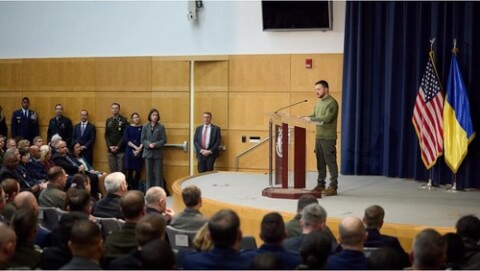 Tổng thống Volodymyr Zelensky phát biểu tại Đại học Quốc phòng, Washington, Hoa Kỳ, ngày 11/12/2023 via Reuters – Ukrainian Presidential Press Service