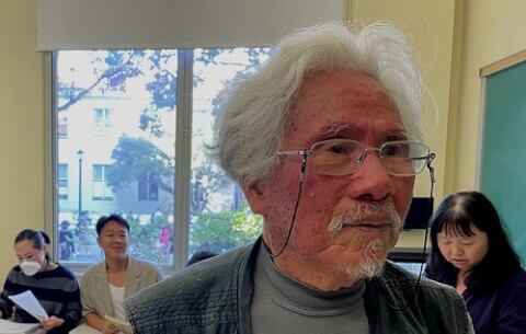 Nhà thơ Bùi Minh Quốc trong lớp Văn học Việt Nam tại Đại học Berkeley hôm 21/9/2023 (Ảnh : Bùi Văn Phú)