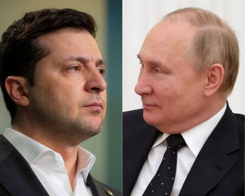 Tổng thống Ukraine Volodymyr Zelensky và Tổng thống Nga Vladimir Putin – Ảnh ghép minh họa