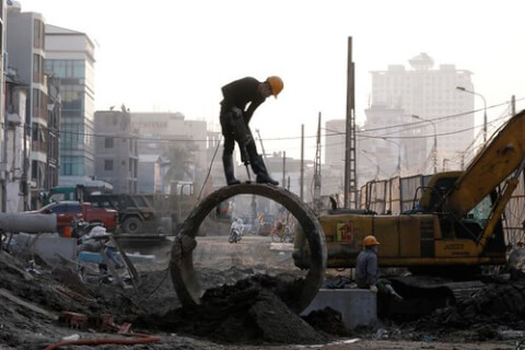Công nhân mở rộng đường mới ở Hà Nội ngày 18 tháng 1 năm 2021. Reuters