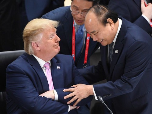 Cảnh Thủ tướng Nguyễn Xuân Phúc - tại Hội nghị G20 Osaka, Nhật Bản, ngày 28/06/2020 - vội vàng tới chào và sờ soạng cánh tay Tổng thống Donald Trump gây nhiều đàm tiếu.