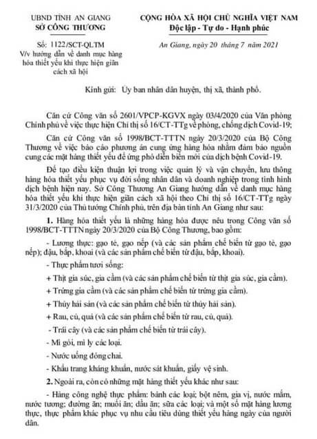 Sau vụ ‘bánh mì’, Khánh Hòa ra hướng dẫn về mặt hàng thiết yếu. Nhiều tỉnh ở miền Tây đã ra văn bản hướng dẫn cụ thể về việc ‘hàng hóa thiết yếu’ là những mặt hàng nào.