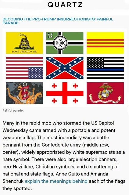 Cờ Việt Nam Cộng Hòa nay đã bị liệt vào danh sách cực đoan cùng những kẻ cuồng tín khác - Ảnh Quartz