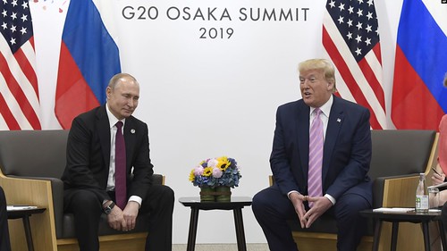 Tổng thống Mỹ Donald Trump và Tổng thống Nga Vladimir Putin tại cuộc họp song phương bên lề Hội nghị Thượng đỉnh G20 ở Osaka, Nhật Bản, ngày 28/06/2019.