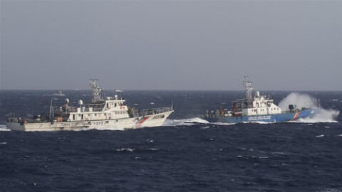 Tàu hải giám Trung Quốc đang săn đuổi tàu kiểm ngư Việt Nam ngoài khơi Trường Sa (Biển Đông) - Ảnh Reuters