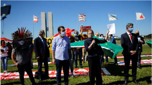 Các dân biểu đối lập Brazil biểu tình trước trụ sở Quốc hội, đòi tổng thống Jair Bolsonaro từ chức, do xử lý kém dịch Covid-19, Brasilia, ngày 21/05/2020 Reuters- ADRIANO MACHADO