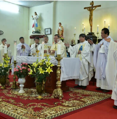 Cũng trong ngôi nhà thờ đó, có sự hiện diện của hàng linh mục, của Tổng Giám mục Vũ Văn Thiên.