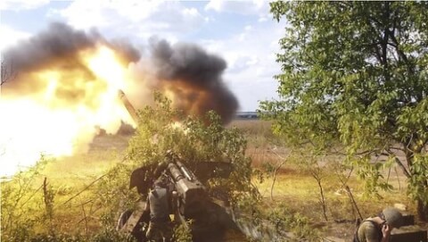 Ảnh minh họa : Binh sĩ phe ly khai tại vùng Donbass nã pháo vào quân đội Ukraine, ngày 10/08/2022. AP