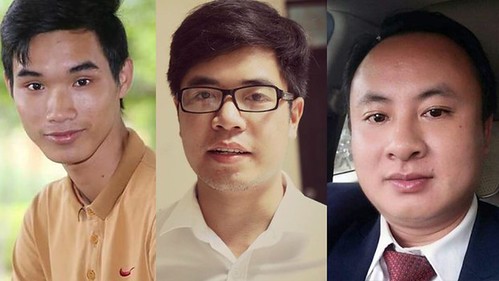 Các trí thức trẻ-tù nhân lương tâm (từ trái sang) Nguyễn Văn Hóa, Phan Kim Khánh và Hà Văn Nam. Courtesy : Facebook, RFA Edited