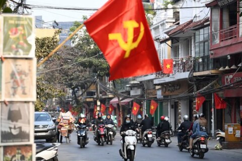 Cờ Đảng cộng sản Việt Nam trên đường phố Hà Nội hôm 22/1/2021 (minh họa) - AFP