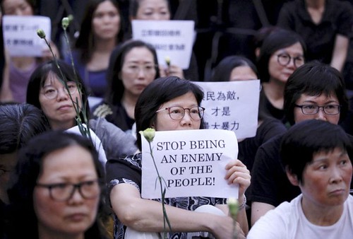 Hàng trăm bà mẹ Hồng Kông xuống đường hôm thứ Sáu, 14 tháng Sáu, phản đối đàn áp biểu tình. (Hình : AP Photo/Vincent Yu)