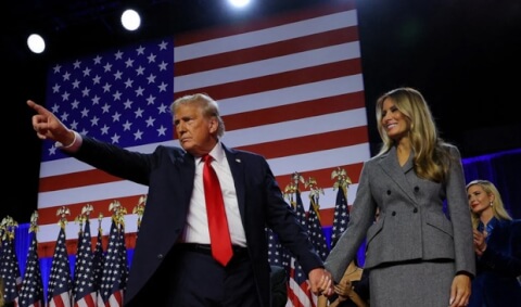 Tổng thống đắc cử Hoa Kỳ Donald Trump chào những người ủng hộ ở West Palm Beach, Florida, tháng 11/2024 - Brian Snyder / Reuters