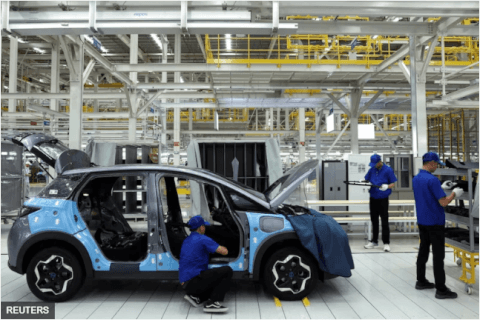 Công nhân tại nhà máy sản xuất xe điện của BYD (Trung Quốc) ở thành phố Rayong, Thái Lan