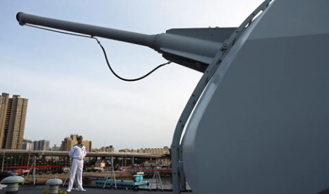 Một người lính đứng gác trên một tàu khu trục của Trung Quốc tại Thanh Đảo, Trung Quốc, tháng/2024 - Ảnh Florence Lo / Reuters