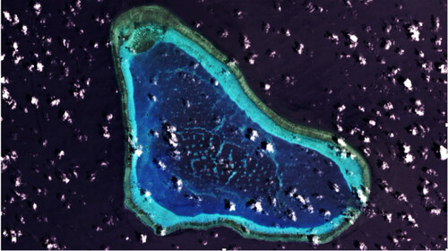 Hình vệ tinh chụp bãi Scarborough vào tháng 3/2021 nơi Trung Quốc đã đăng ký thương hiệu. Planet Labs Inc