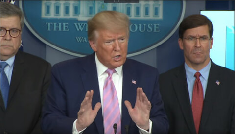 Ảnh : Tổng thống Mỹ Trump tại họp báo ở Nhà Trắng hôm 1/4