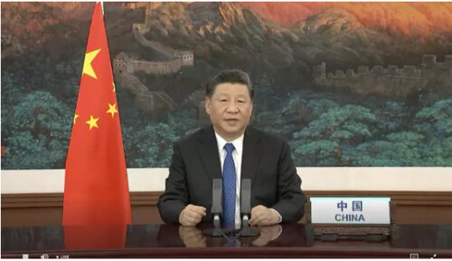 Chủ tịch Trung Quôc Tập Cận Bình tham dự - qua video hội nghị - một cuộc họp quốc tế. Ảnh chụp từ màn hình ngày 18/05/2020. AFP -