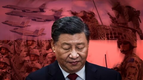 Nền kinh tế mong manh của Trung Quốc đã buộc Chủ tịch Tập Cận Bình phải tìm ra biện pháp chống lại hiệu quả của tuyên truyền chiến binh sói. (Nikkei/Kyodo, Getty Images, Reuters)