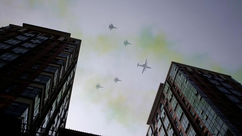 Máy bay của Không quân Trung Quốc tập dượt cho lễ diễu binh Quốc Khánh 01/10. Ảnh chụp tại Bắc Kinh ngày 22/09/2019. Reuters/Jason Lee