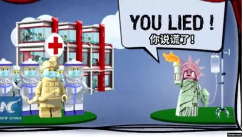 Đoạn video hoạt hình ngắn này có hai nhân vật chính được trình bày theo dạng trò chơi Lego. Bên trái là một chiến binh Trung Quốc thời xưa có mang khẩu trang, bên phải là tượng Nữ thần Tự Do.