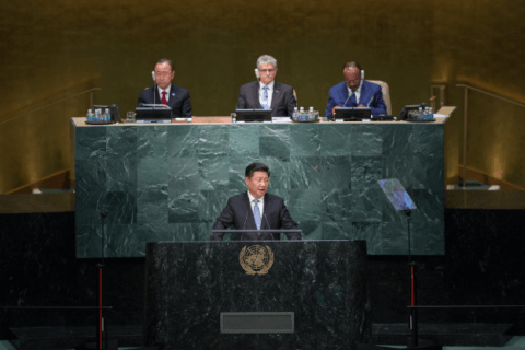 Chủ tịch Trung Quốc Tập Cận Bình phát biểu tại phiên thảo luận chung của kỳ họp thứ 70 Đại hội đồng, ngày 28/09/2025 – Ảnh UN/Cia Pak