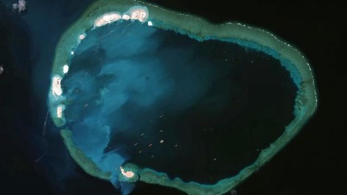 Đá Vành Khăn (Mischief Reef). Ảnh chụp từ vệ tinh của CSIS@CSIS>