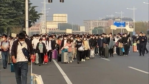 Hai túi lớn được chất đầy đồ rất nhanh, với vẻ mặt nhẹ nhõm của hàng chục nghìn người mới từ bỏ việc làm có mặt tại nhà ga Trịnh Châu. Hôm qua, các chuyến tàu đặc biệt đã được huy động để đưa họ trở về quê sau khi trong mấy ngày qua đã diễn ra các cuộc biểu tình phản đối điều kiện sinh hoạt trong các nhà máy bị cách ly của nhà thầu phụ Apple và những hợp đồng không được tôn trọng.
