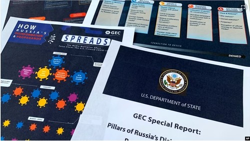 Một trang phúc trình của Trung tâm Tương tác Toàn cầu của Bộ Ngoại giao Mỹ. Trung tâm nói Bắc Kinh thu hút giới tinh hoa chính trị và các nhà báo nước ngoài để thao túng các phương tiện truyền thông toàn cầu.Trung