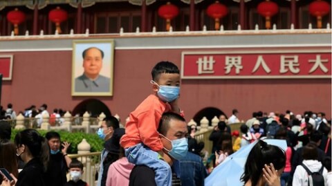 Tại Quảng trường Thiên An Môn, Bắc Kinh, Trung Quốc, 3/5/2021. Tỷ lệ sinh đẻ tại Trung Quốc tiếp tục giảm. AP - Ng Han Guan