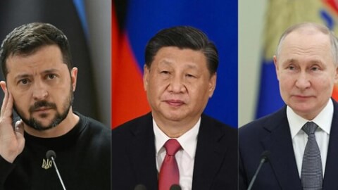 Volodymyr Zelensnky, Tập Cận Bình, Vladimir Putin : Ít ai tin Trung Quốc có thể đóng vai trò trung gian hòa giải giữa Nga và Ukraine để chấm dứt chiến tranh. Ảnh ghép ngày 26/04/2023. AFP – Genya Savilov, Vladimir Astapkovich, Gavriil Grigorov