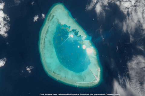 Trong ảnh chụp tháng 11/2025, rạn san hô dường như chưa bị tác động, chỉ có một cơ sở nhỏ hiện hữu dọc theo rìa phía đông nam.