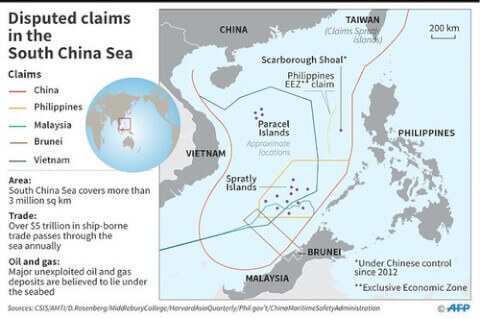 Đường "lưỡi bò" mà Trung Quốc tự vạch ra trên Biển Đông - AFP