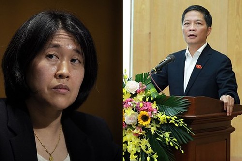 Bà Katherine Tai (trái) và ông Trần Tuấn Anh đã có buổi điện đàm ngày 1/4/2021 - Bloomberg, Laodong -RFA edited