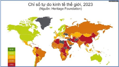 Trong gần bốn thập niên, Việt Nam tiếp tục cải thiện tự do kinh tế thành công theo xếp hạng mới nhất dựa trên Chỉ số Tự do Kinh tế (Index of Economic Freedom) của Heritage Foundation vào năm 2023.