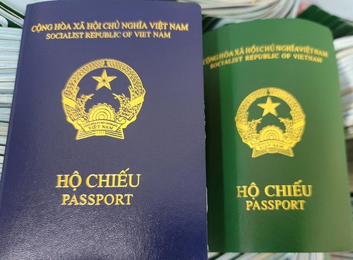 Việt Nam hiện lưu hành hai mẫu hộ chiếu, mới (xanh tím than, trái) và cũ (xanh lá cây) cùng lúc.